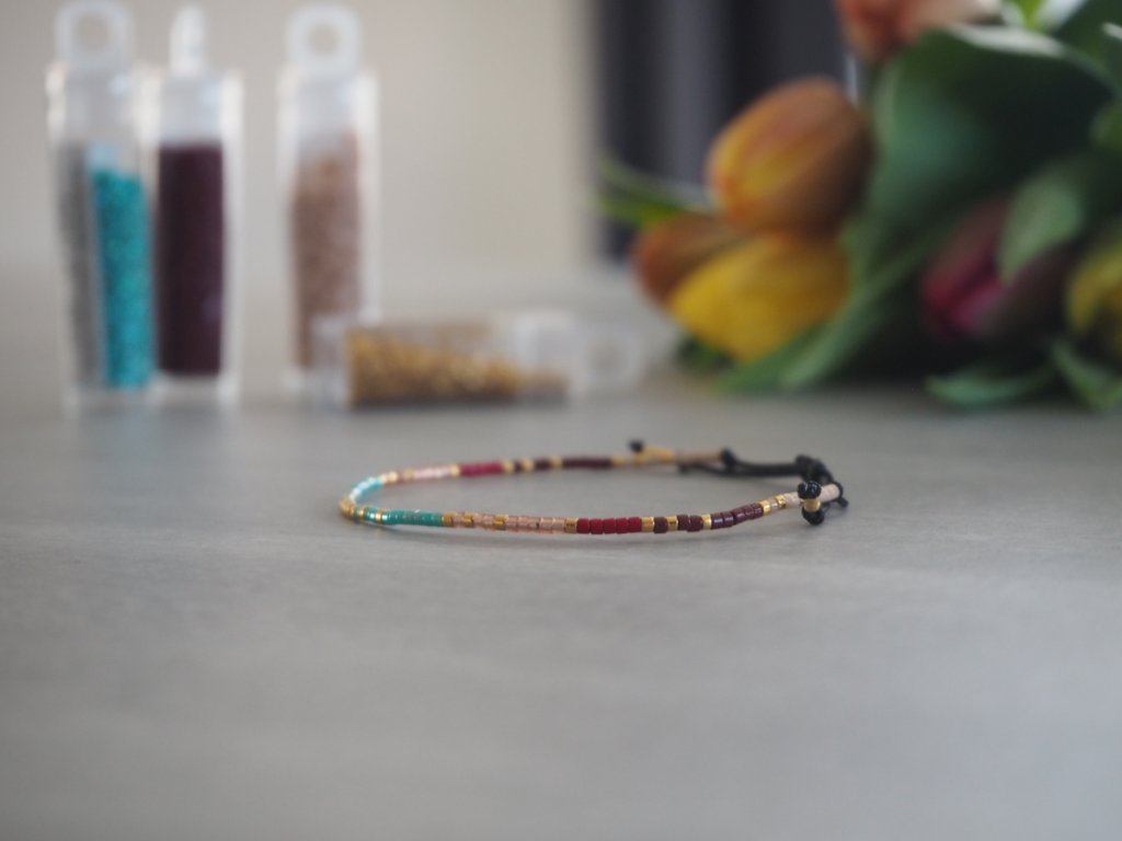 Náramek z kvalitních japonských korálků Miyuki a nylonové šňůrky.