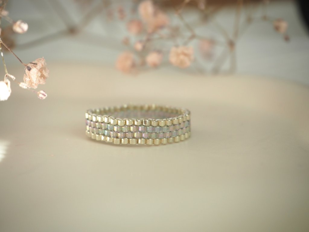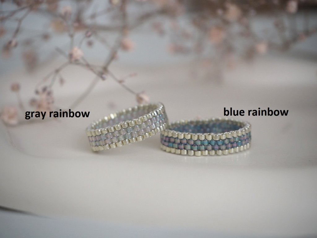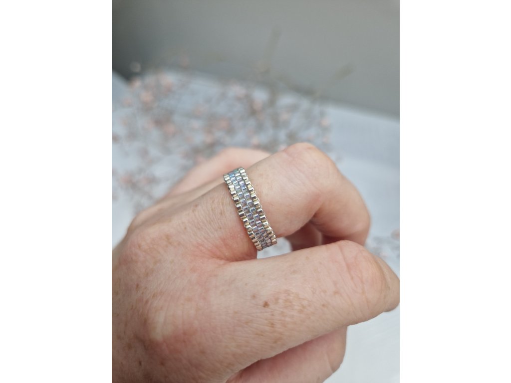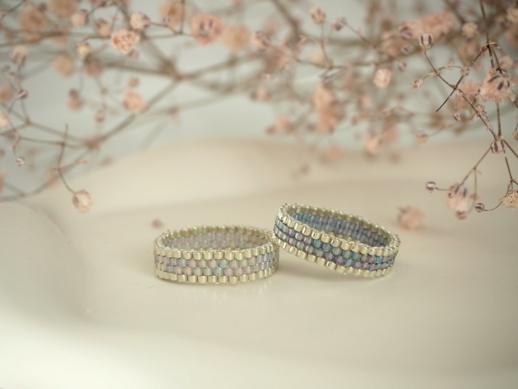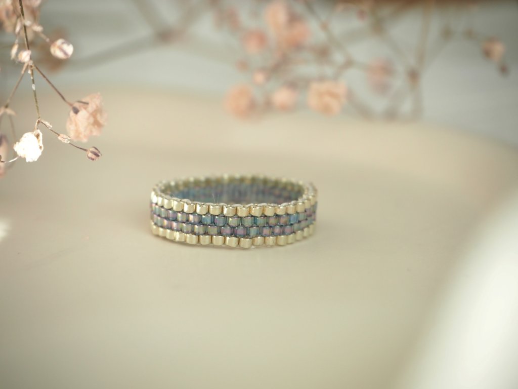 Vyrobený z prémiových japonských Miyuki korálků, ručně šitý časově náročnou technikou stehem Peyote. Je netradiční a je též nepřehlédnutelnou ozdobou ženské ruky. Šitý vysokopevnostní nití. Každému prstýnku se vždy pečlivě věnuji a po sešití jej znovu celý prošívám. To zajišťuje jeho pevnější tvar a delší výdrž.